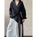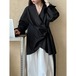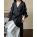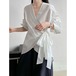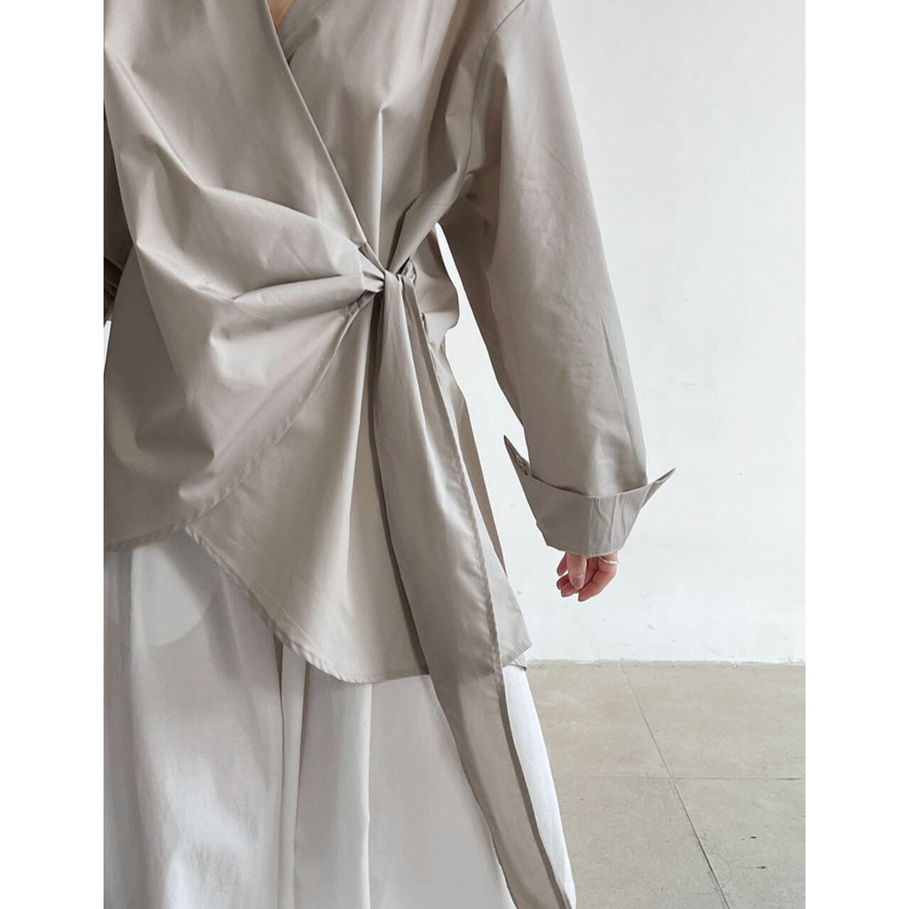 ウエストを結ぶリボンがアクセントになったシャツ。シンプルなボトムスと合わせるだけで、個性が光るスタイリングが完成します。