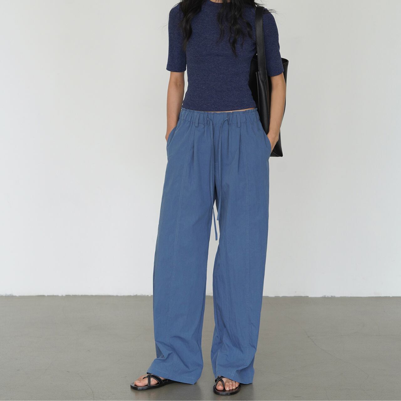 センタープレスリラックスワイドパンツ a0533