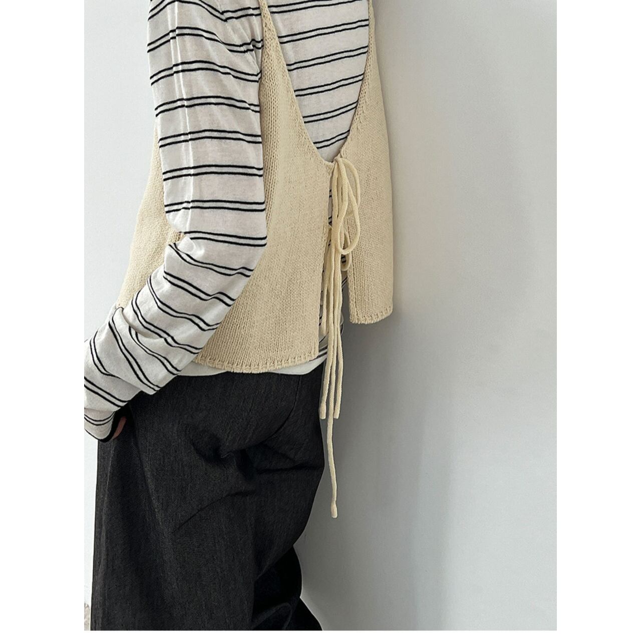 リボンを前にすれば重ね着コーデのアクセントになり、リボンを後ろにすればバックシャンで目を惹き、着回し力抜群です。