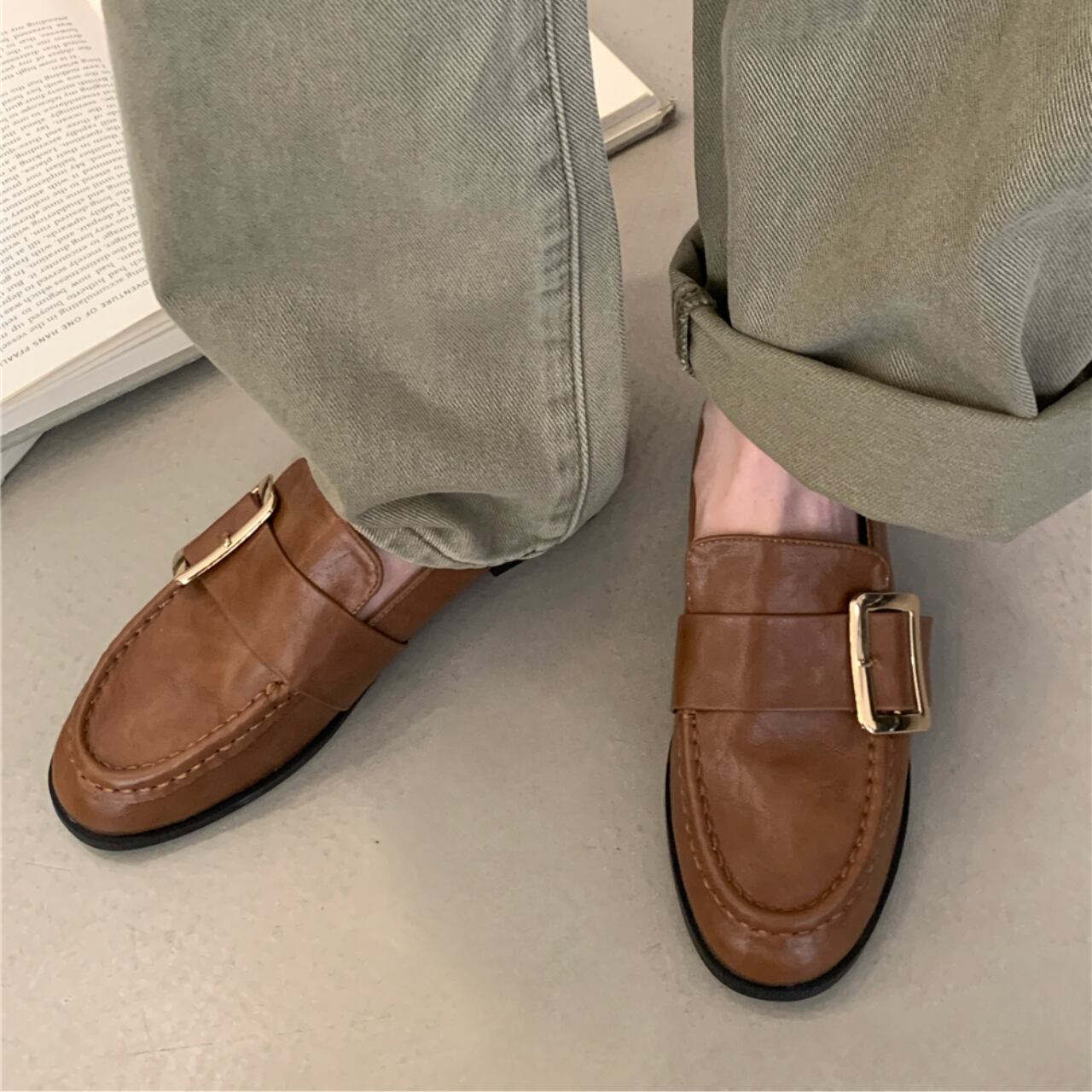 バックルが特徴的なローファーで、いつものコーディネートに個性をプラス。
