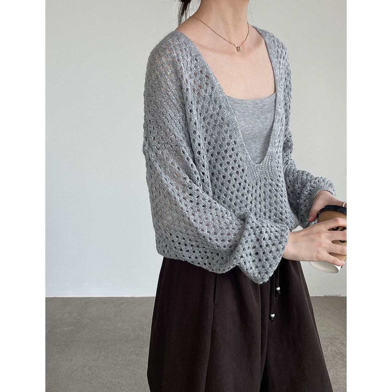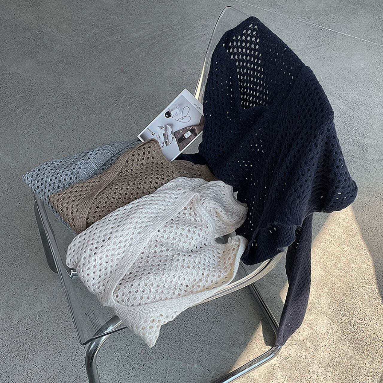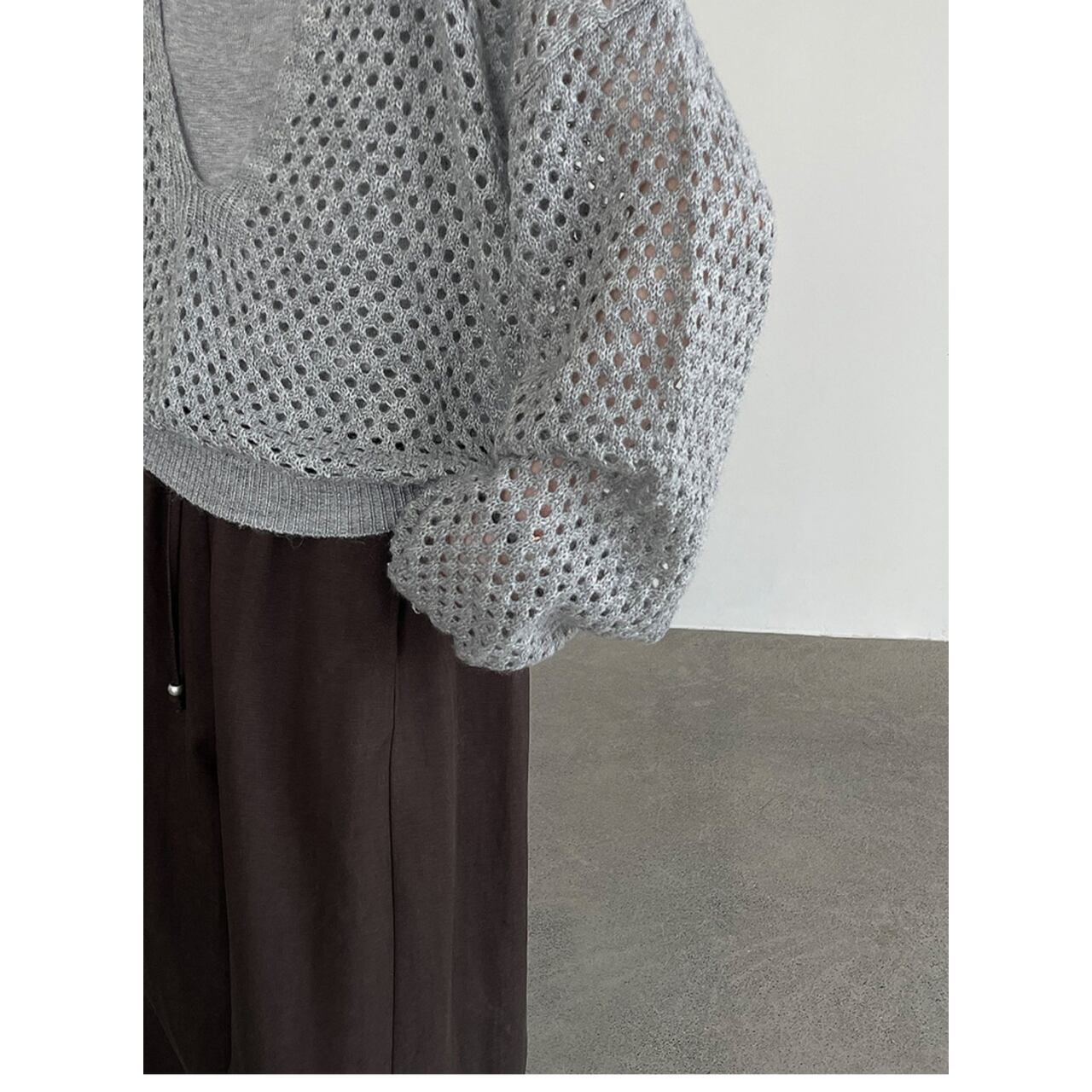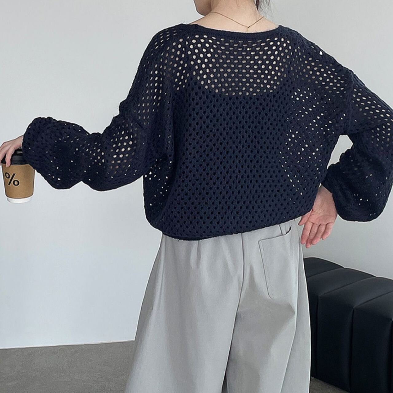 軽やかな印象のメッシュニットプルオーバーと、シンプルなキャミソールのセット。