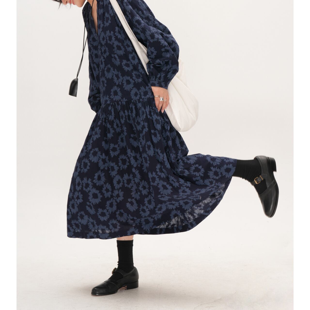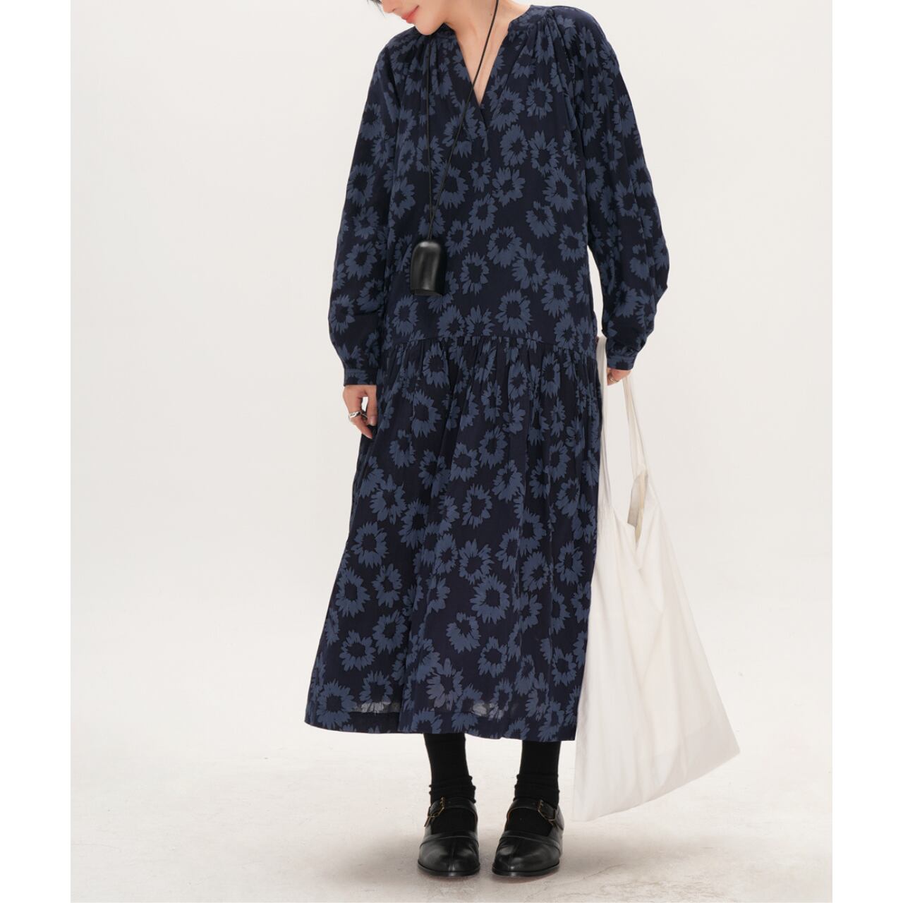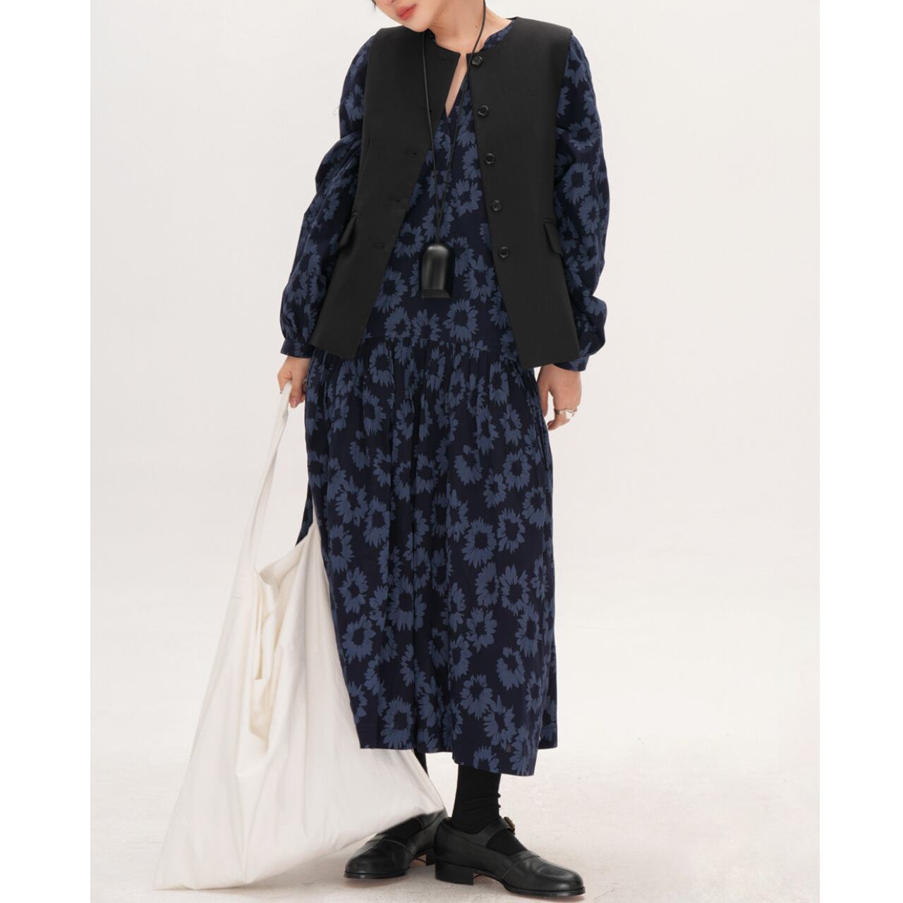 甘くなりすぎない落ち着いた花柄とすっきりとしたネックラインが、大人っぽい印象を与えます。