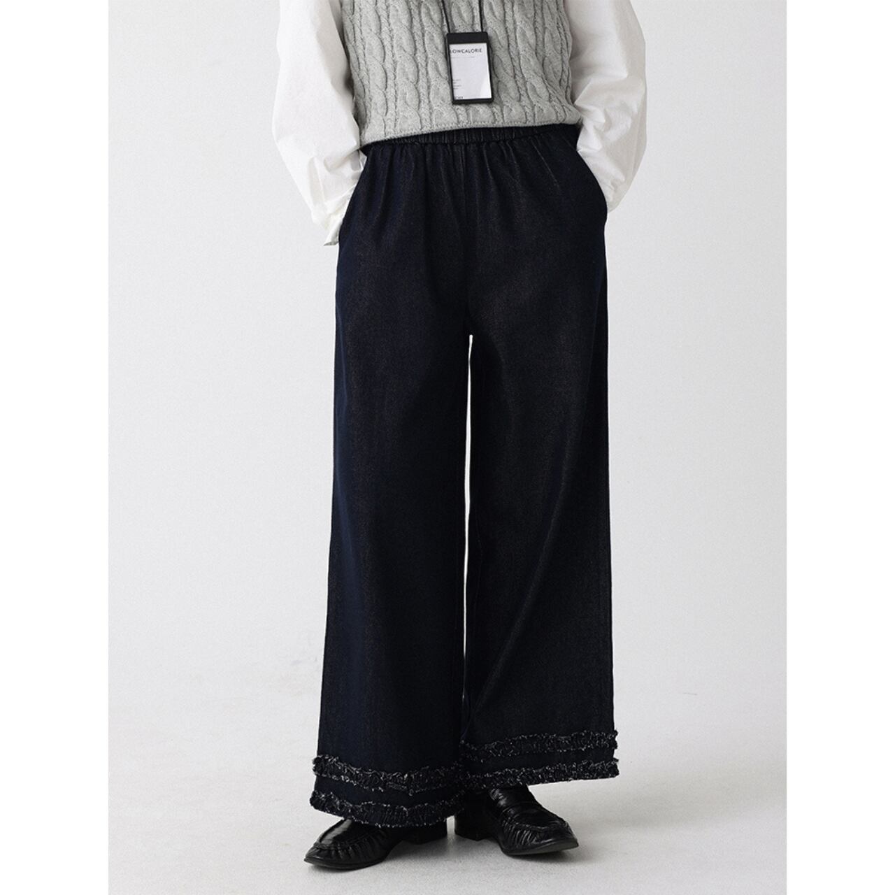 フリルヘムワイドレッグデニムパンツ a0611