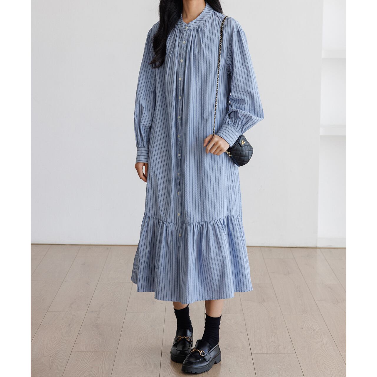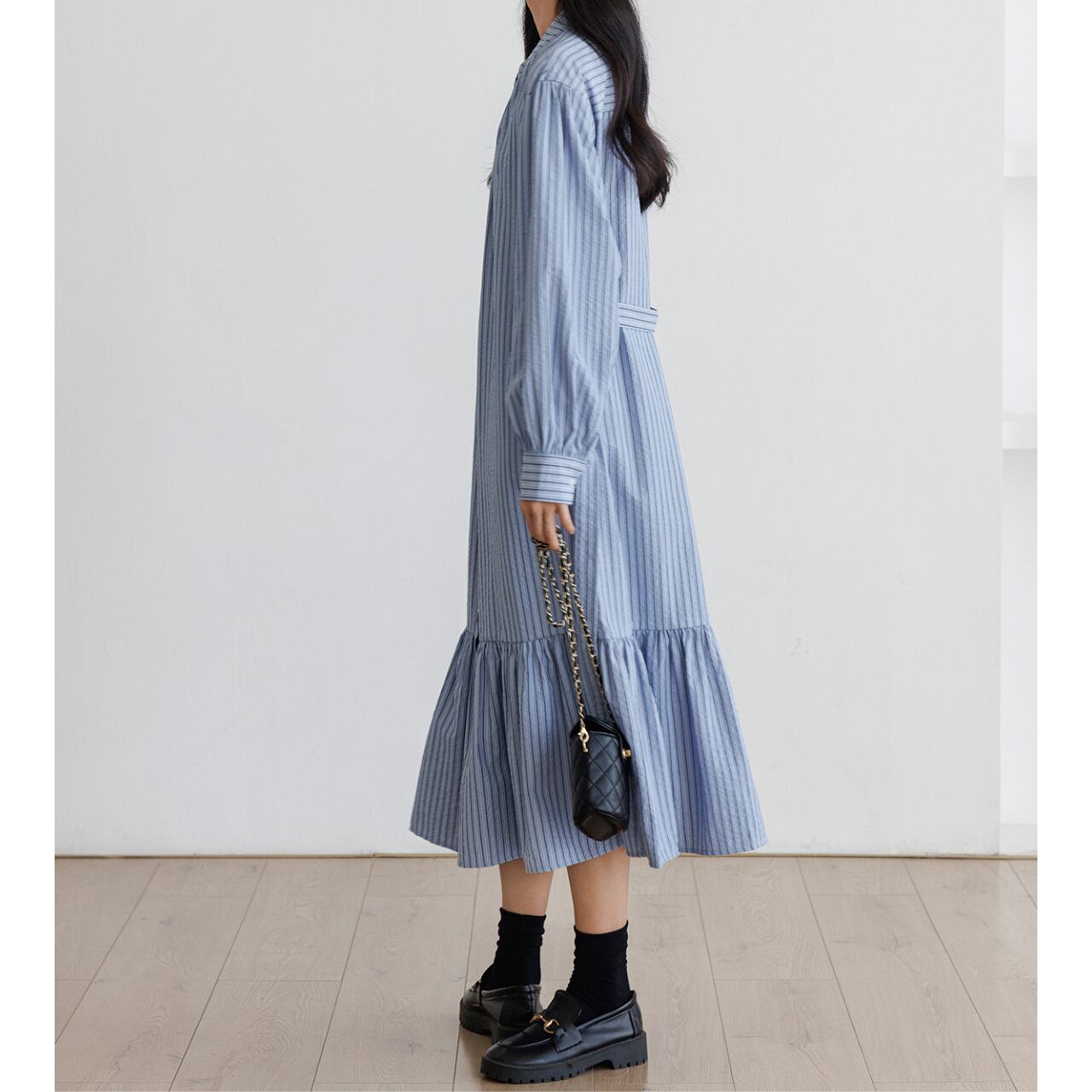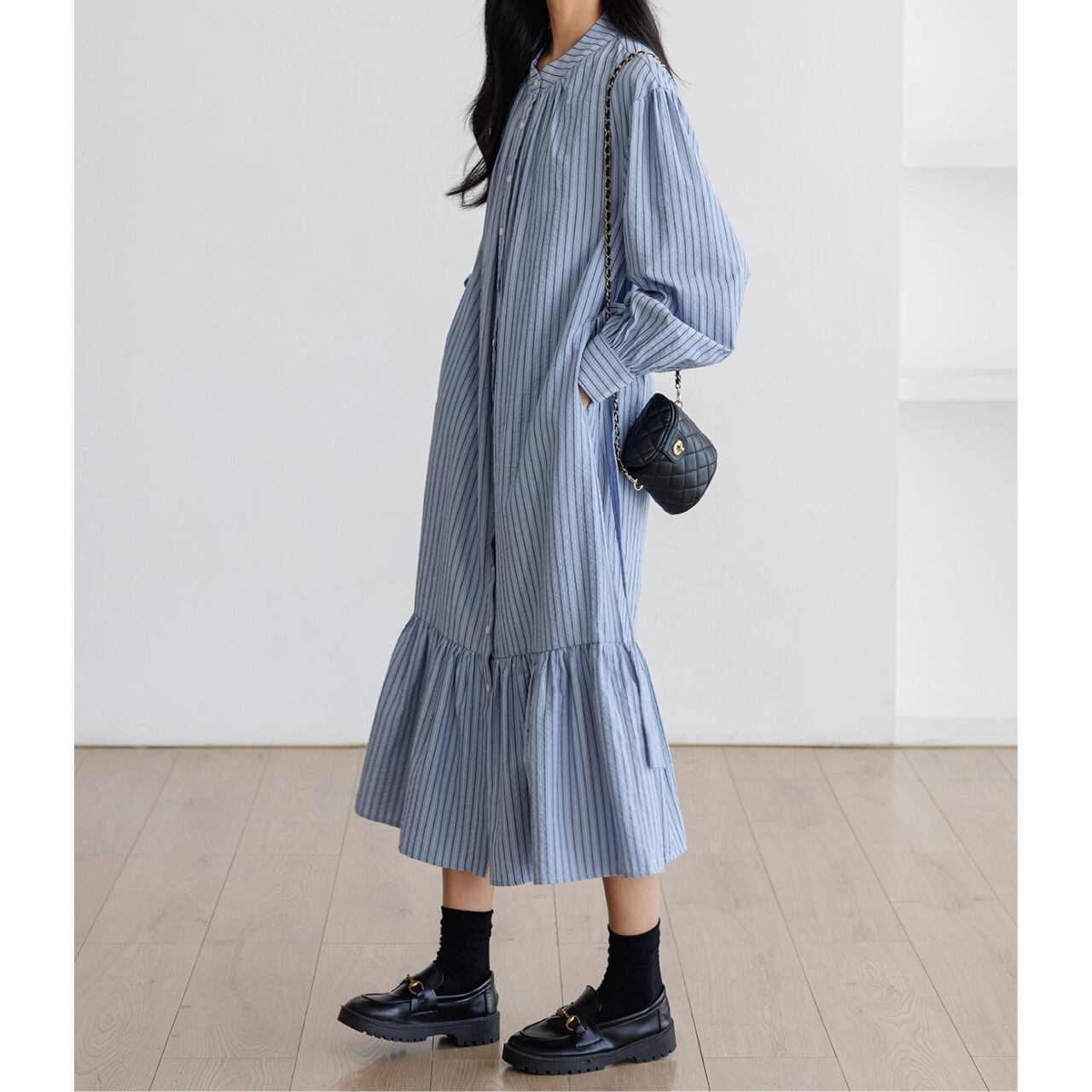 すっきりとしたスタンドカラーと、ティアードデザインが上品なワンピースです。