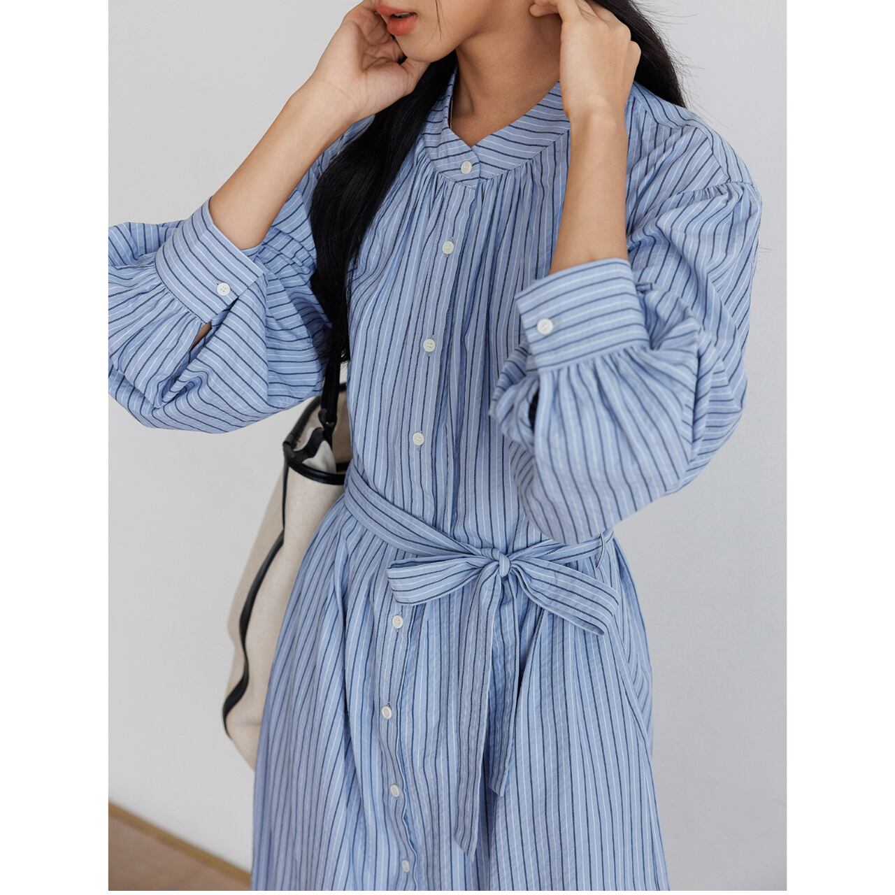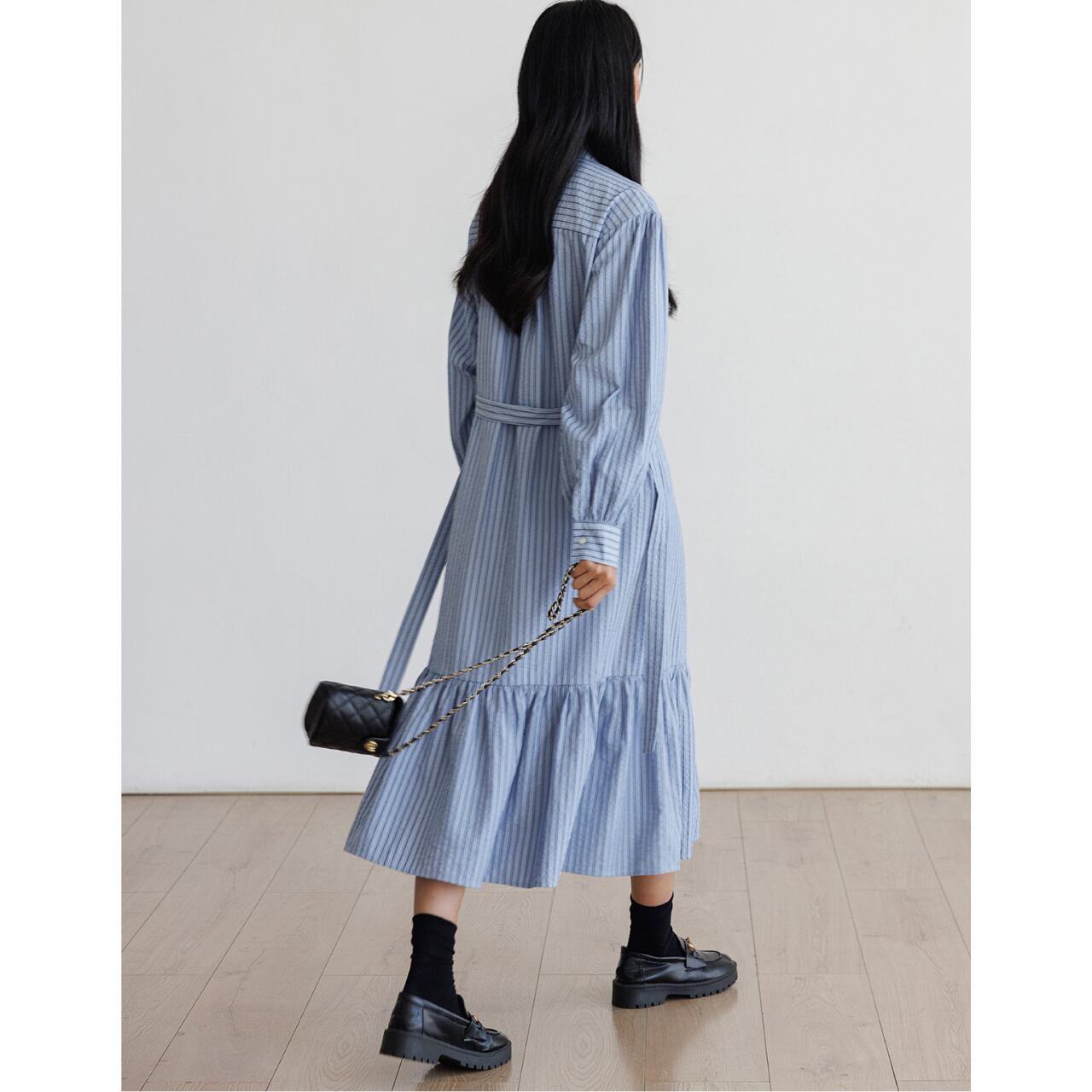 ストライプ柄で甘くなりすぎない大人っぽい印象に。1枚で着映えするデザインなので、特別な日にも最適です。