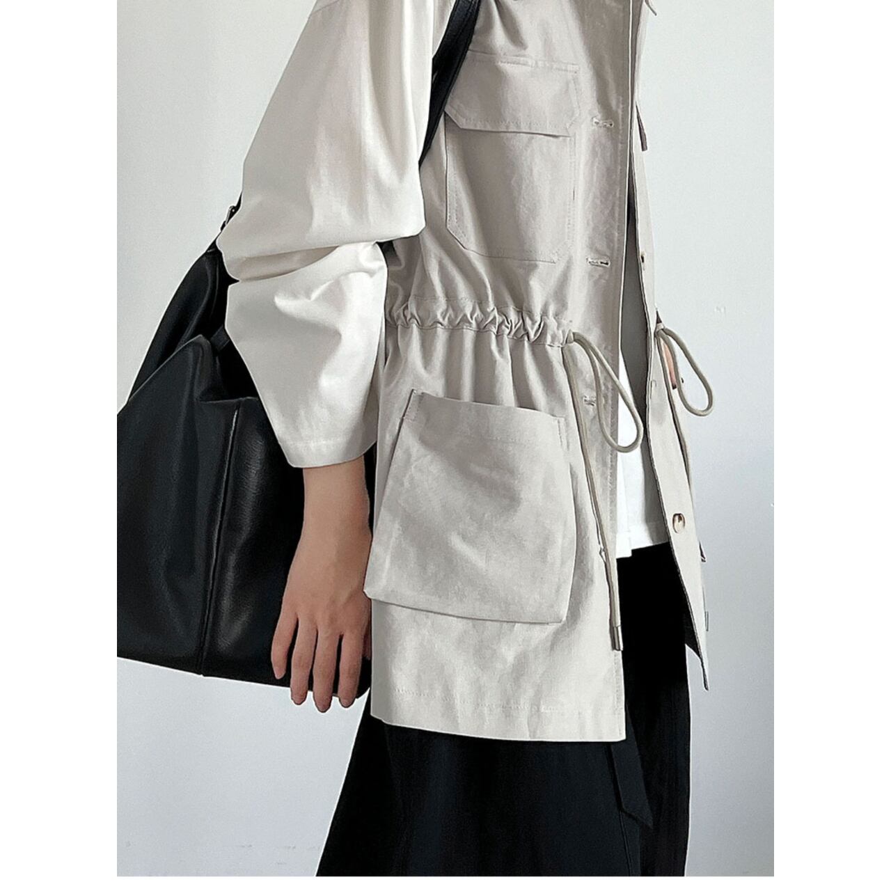 ボタンを留めてジャケット風にも、羽織としてカジュアルにも着こなせます。