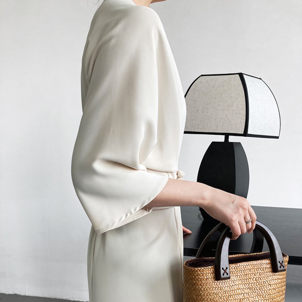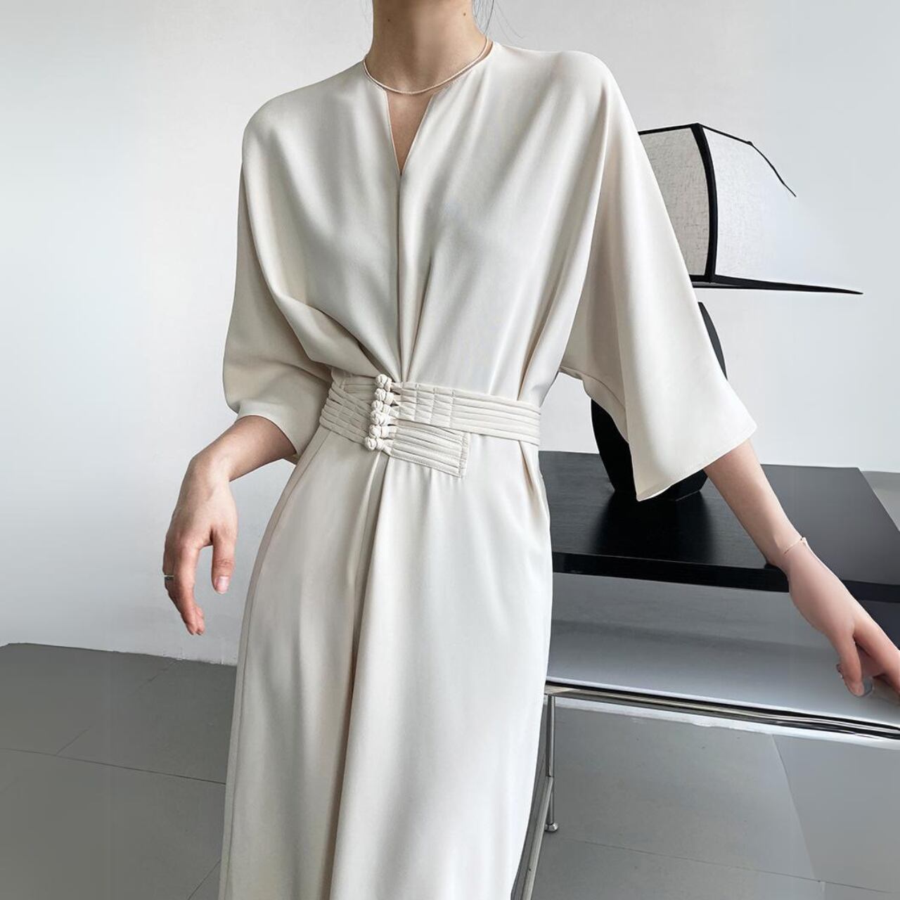 美しいドレープが流れるようなシルエットを生み出すワンピース。