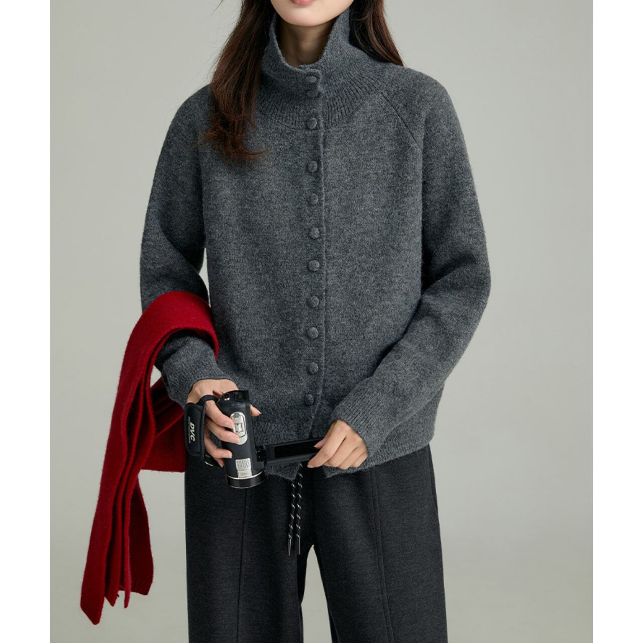 ボタンを全て留めてハイネックとしても着用でき、着こなしの幅が広がります。